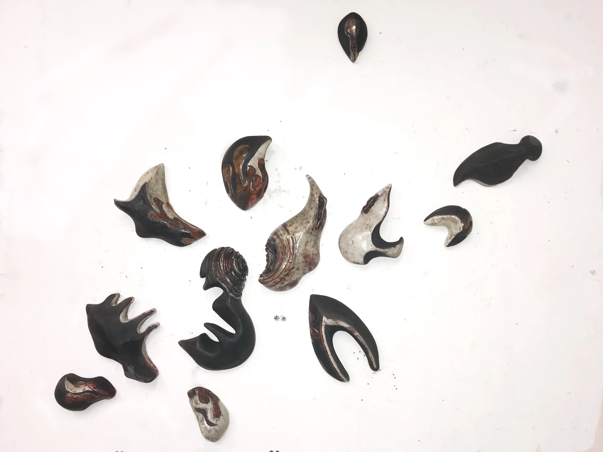 “Aftermath of One Decision” Spring 2018, Cone 05 - White Raku Body - Raku Fired, Dimensions: 2ft (W) x 4 ft (H) - Wall piece
