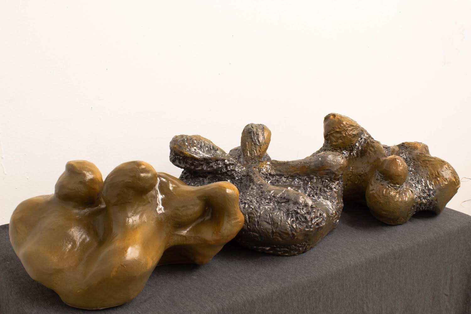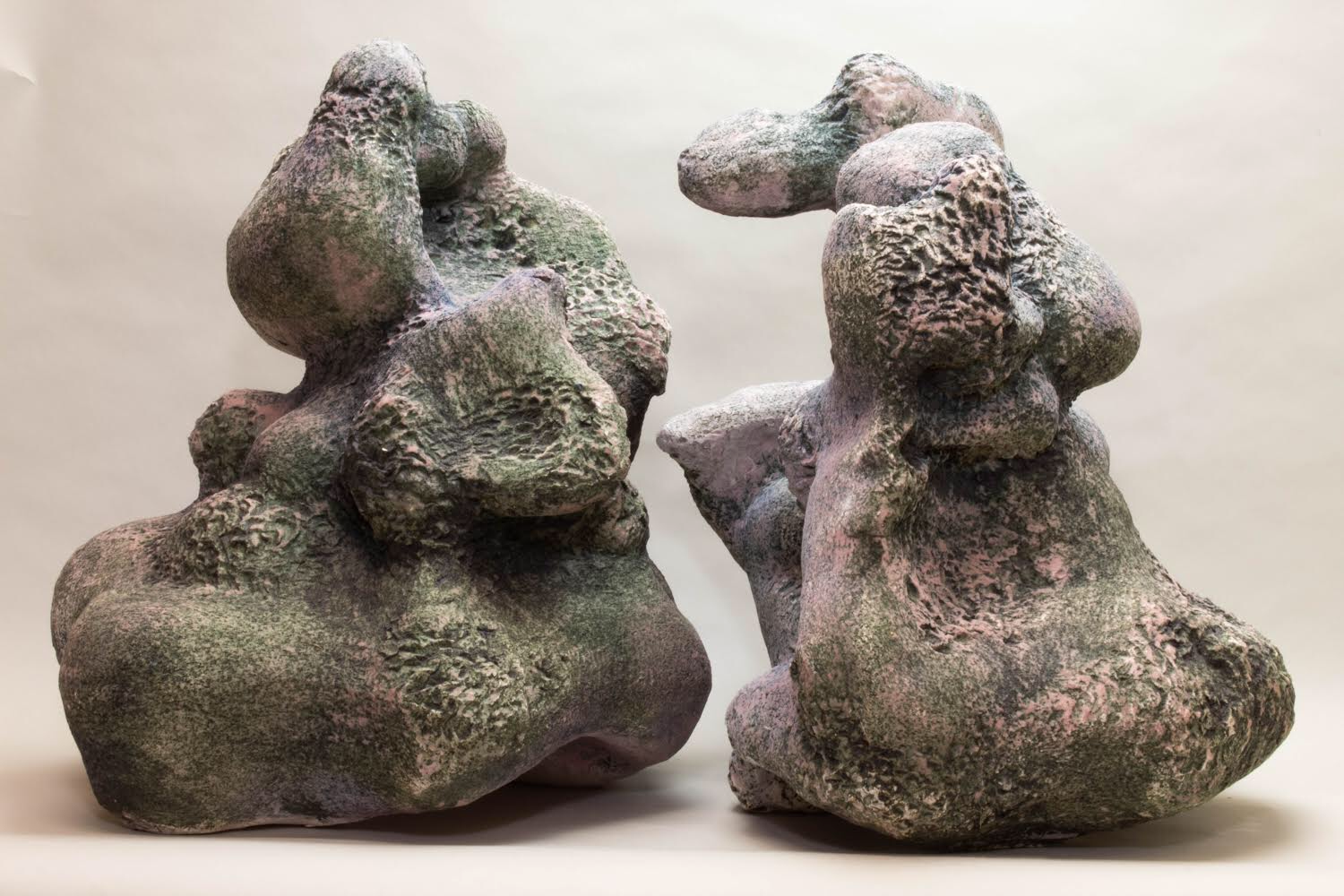 “A Hard Embrace” Spring 2019, Cone 04 White Earthenware, glaze & Black Copper Oxide Wash. Dimensions: 2ft (W) x 1.5ft (D) X 1.5ft (H)